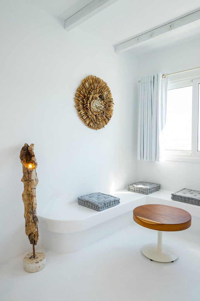 This suite includes a private pool, with large balcony, facing the Paliocastro with ocean view. The suite is approximately 48 sq. meters and contains a double bed, mini kitchen along with indoor/outdoor seating and sun loungers.